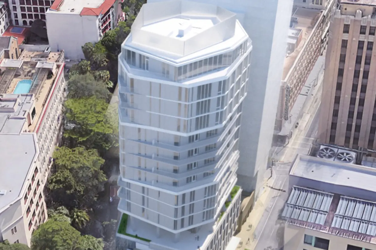 17-story residential tower in San Antonio featuring a 56-space PARKPLUS AGV automated parking system installed across upper parking levels to support vertical residential density.