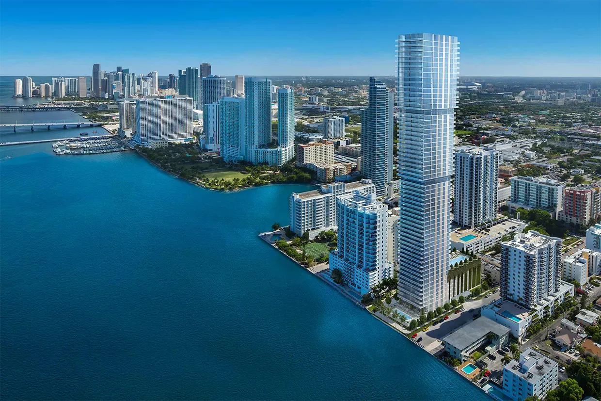 57-story bayfront luxury condominium in Miami incorporating a 234-space PARKPLUS Rack & Rail automated parking system, supporting high-capacity parking within a premier waterfront tower.
