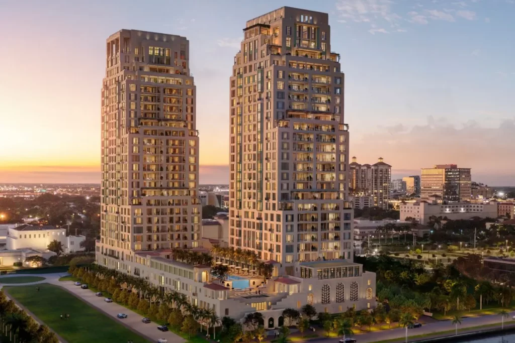 Ultra-luxury waterfront residential development in West Palm Beach featuring a 312-space PARKPLUS AGV automated parking system, one of the largest AGV residential installations currently under construction in the United States.