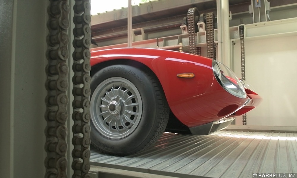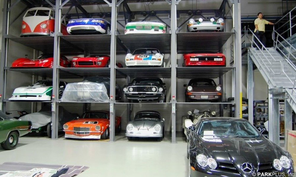 Private Auto Museum of the founder of Peterson Automotive Museum features a custom ParkPlus QP1000 Stacker for transporting vehicles between floors.
