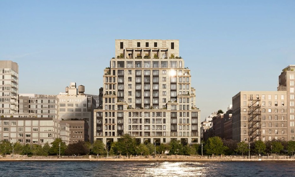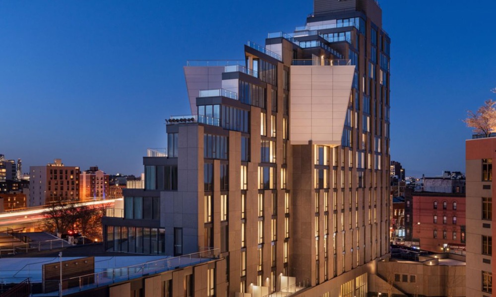 This luxury condominium in New York features a 21-space ParkPlus 4-High 1-Deep Lift-Slide Puzzle Parking System, supporting high-density parking within a vertical residential project.