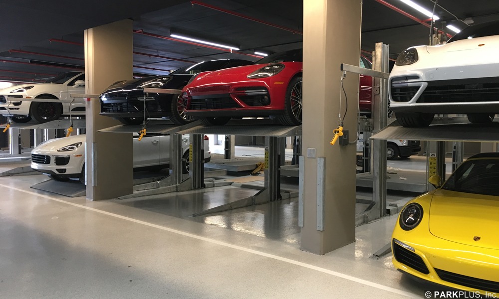 This auto dealership & service center in San Francisco is equipped with 44 ParkPlus DP003 Double Stackers for increased service and inventory capacity.