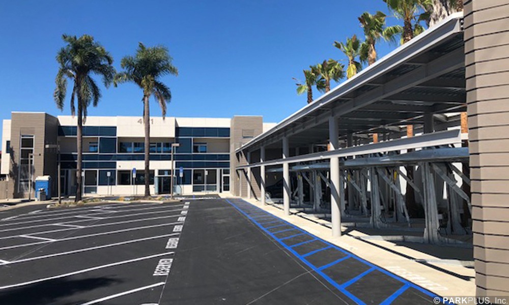 These medical offices in Newport Beach, California are equipped with 9 ParkPlus DP003 Double Stackers installed to increase parking for Change of Use from traditional office to medical office.