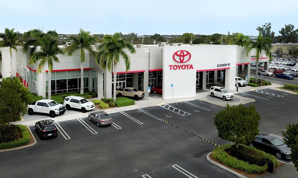 Southern Toyota Auto Dealership features a custom ParkPlus QP1000 Electric Quad Stacker to display vehicles.