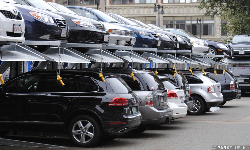 This Venice Beach, Los Angeles valet parking lot is equipped with 30 ParkPlus DP003 Double Stacker Car Lifts. The stackers doubled the capacity and revenue of the site.