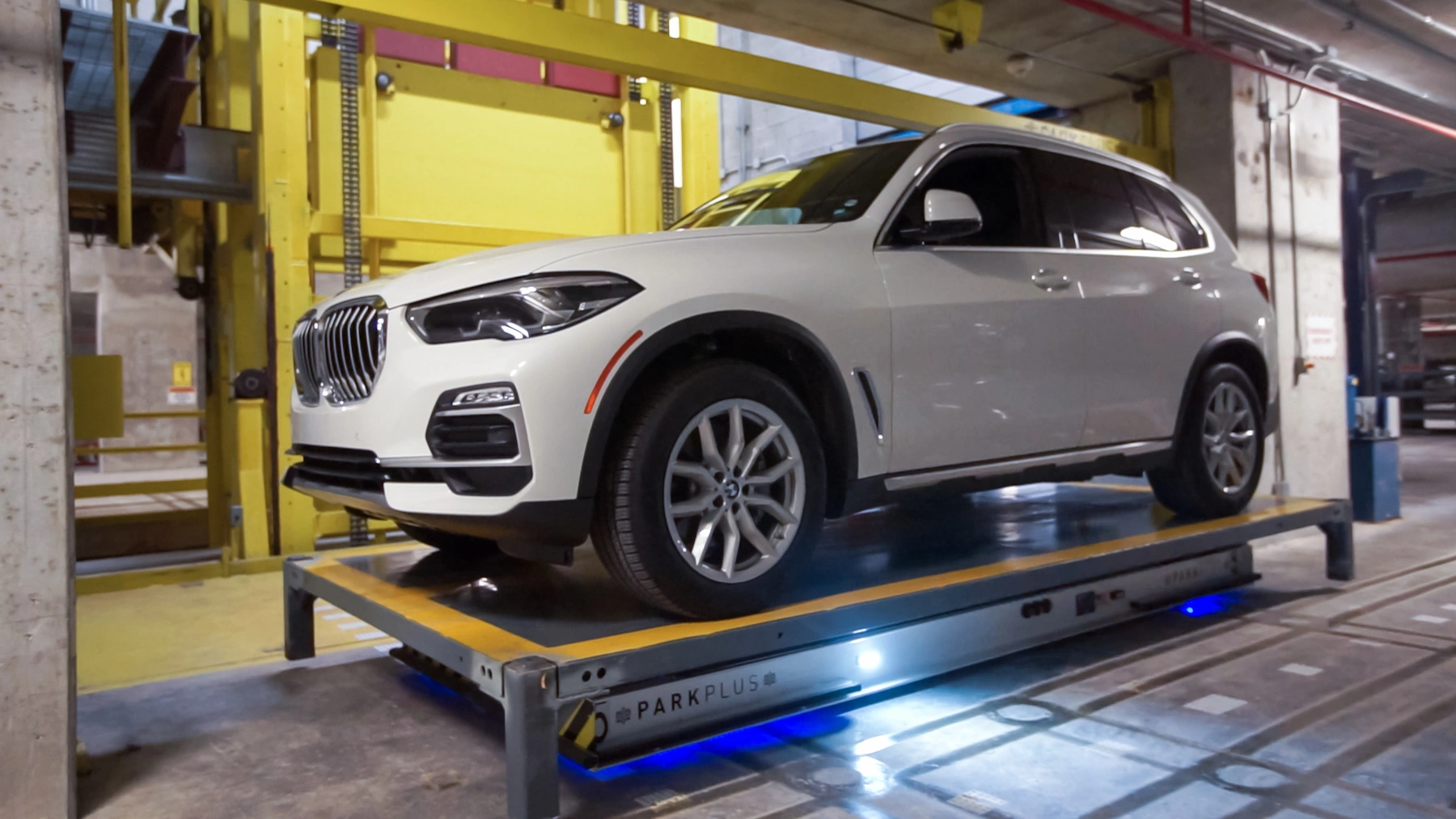 Average retrieval time at Paramount is approximately four minutes. Residents request their vehicle through the ParkPlus mobile app in advance, so the car is typically waiting at the valet station by the time they reach the lobby level. Vehicles stored in long-term tandem positions, up to three cars deep, may take slightly longer as the system coordinates multiple robots to retrieve them.