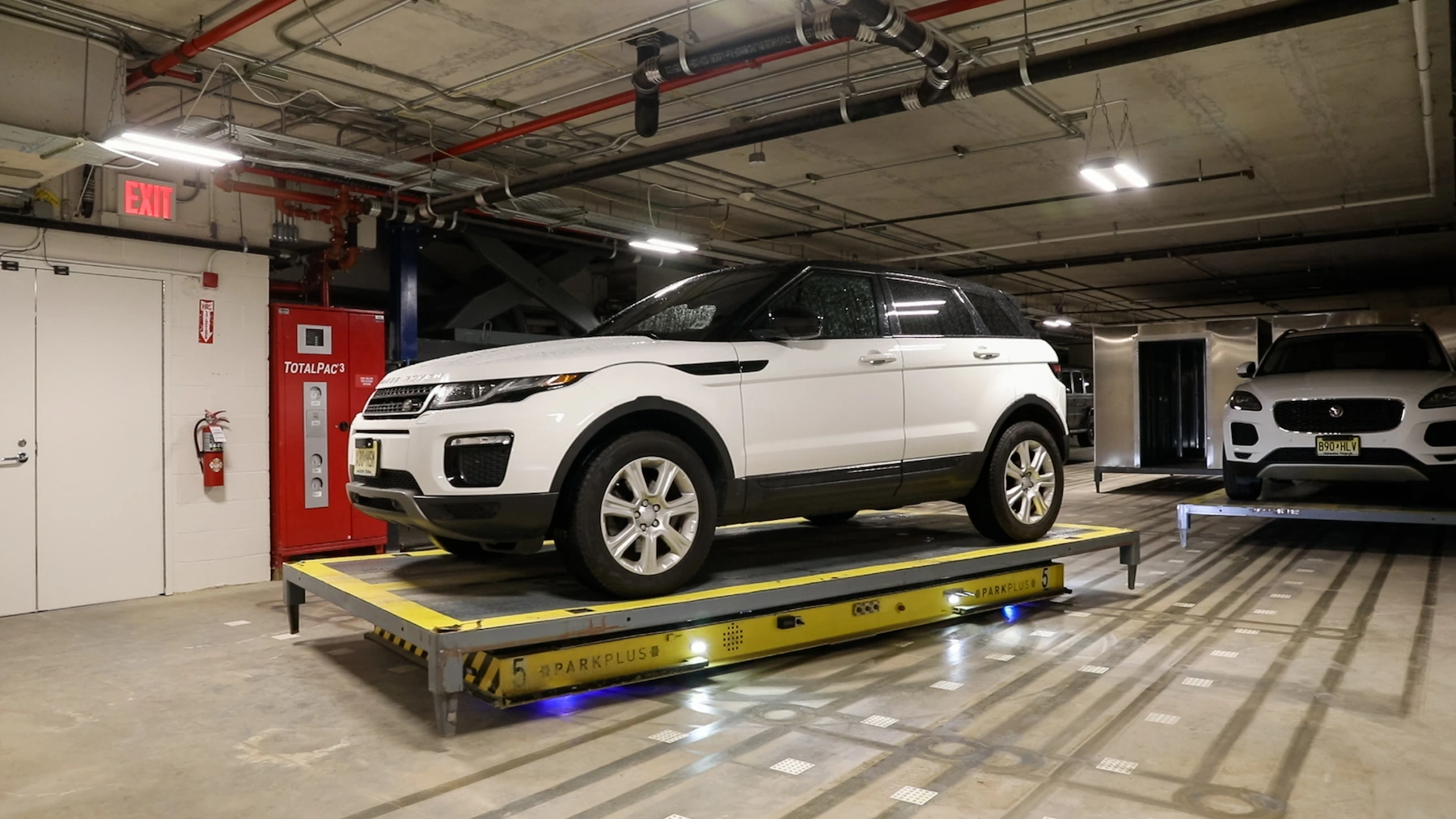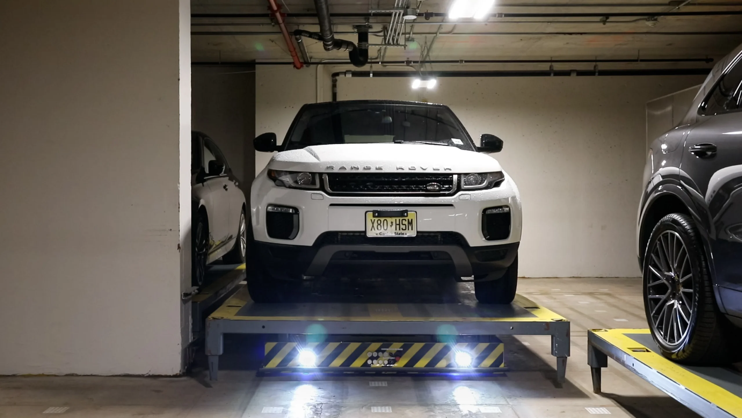 ParkPlus designed and installed a 40-space AGV automated parking system across two subterranean levels. The fully robotic system moves vehicles within the structure without drivers ever entering the garage. A single street-level transfer point handles all arrivals and retrievals, leaving the basement footprint entirely available for productive storage.