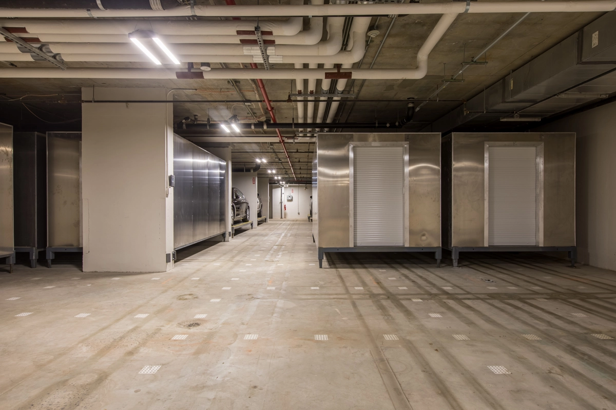 The automated storage system followed the same logic. Using the same robotic platform already in the building, ParkPlus integrated 20 storage pods into a dedicated delivery room — no additional mechanical systems required, no separate infrastructure to maintain. Residents get a finished, private storage amenity that the building’s footprint appeared to have no room for.